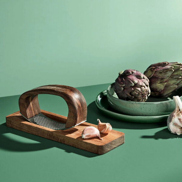 - Met deze Adhoc knoflookpers RoccaAlio hak je je knoflook gelijkmatig, makkelijk en voorzichtig fijn. En dat allemaal in 1 vloeiende beweging dankzij het ronde lasergesneden RVS mes.