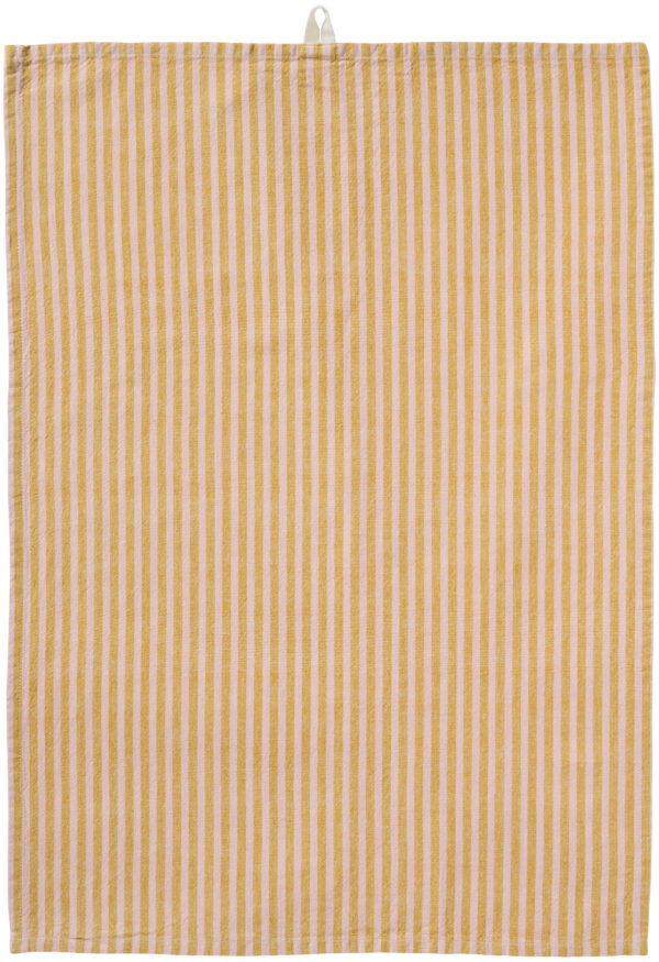 IB Laursen – Theedoek Linea – smalle streep mosterd/roze