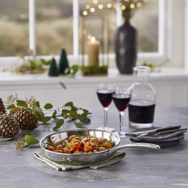 - De binnenzijde van de Scanpan koekenpan Fusion 5 heeft geen scherpe randen, waardoor er geen voedsel kan blijven zitten.